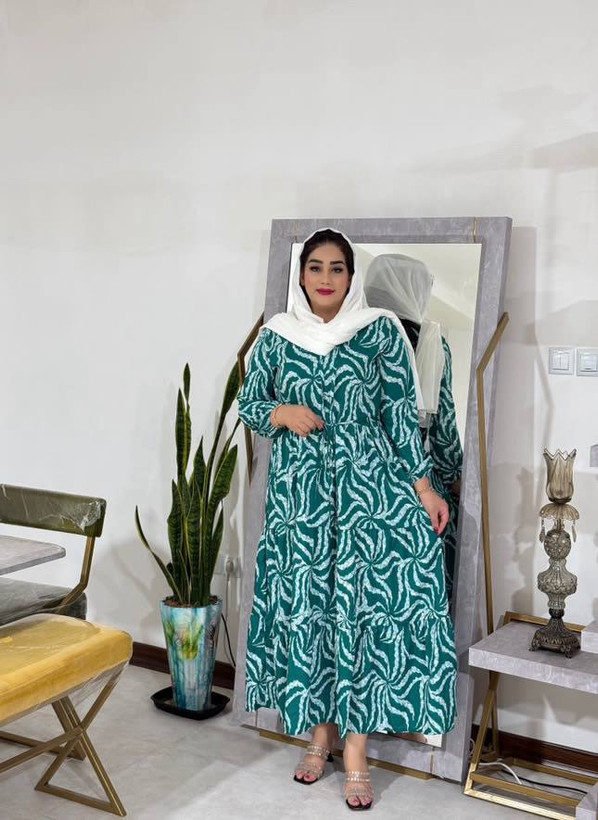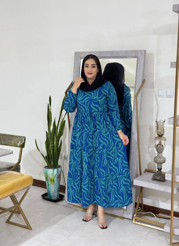 پیراهن ساحلی زنانه بلند طرح‌دار فری سایز جنس فلور قد ۱۳۷