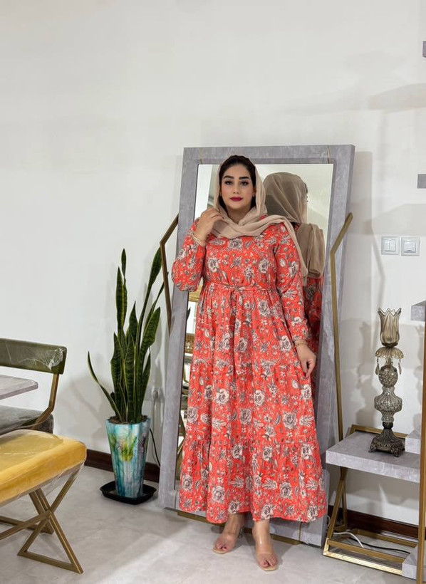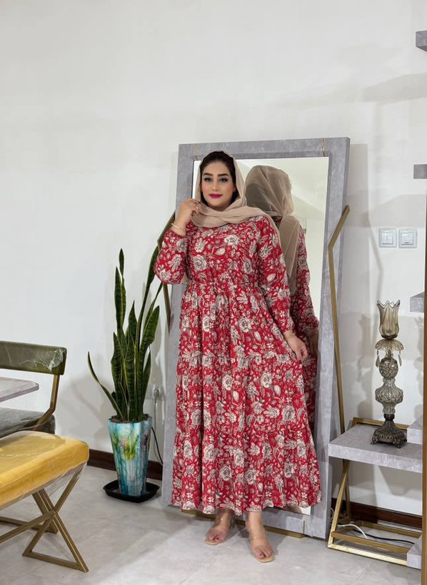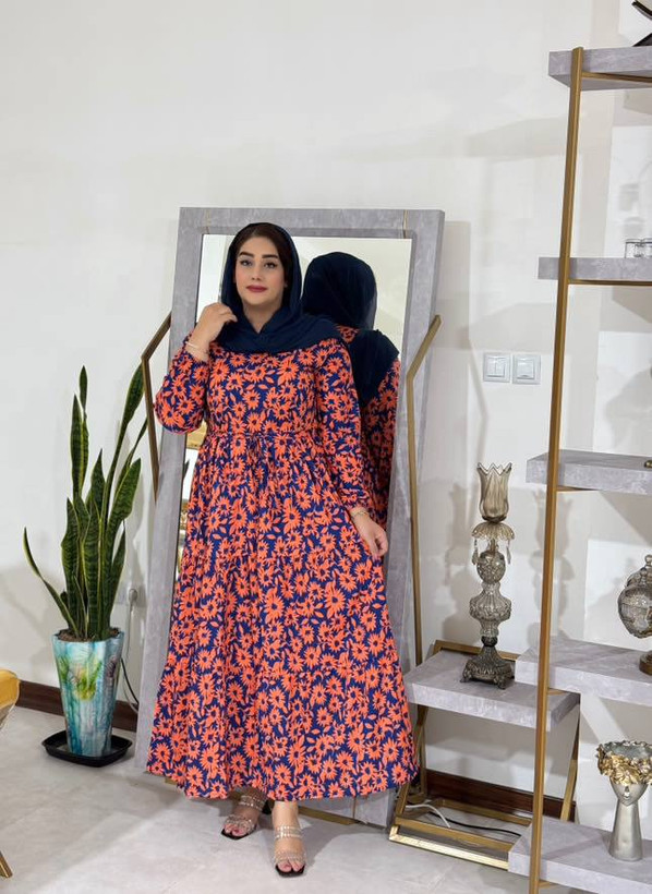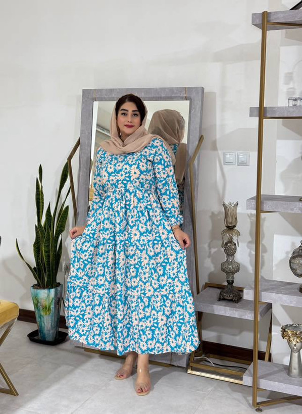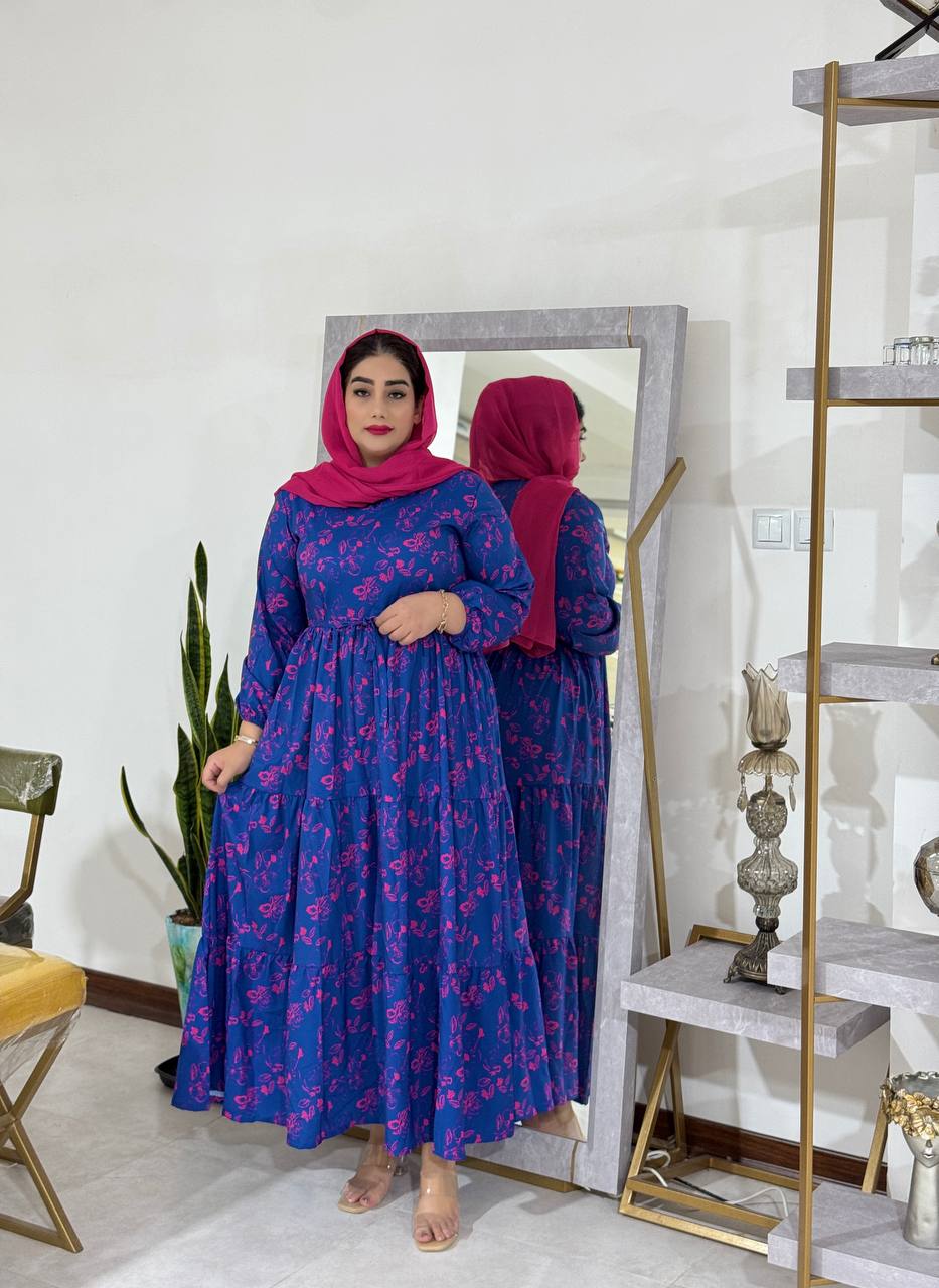پیراهن ساحلی زنانه بلند گلدار فری سایز جنس فلور قد ۱۳۷